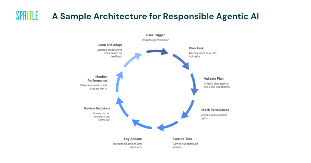 This layered architecture ensures that Agentic AI operates within structured boundaries and remains transparent, auditable, and controllable.